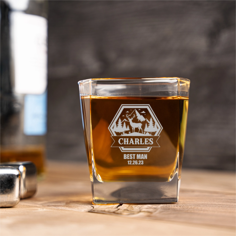 Elevate your whiskey experience with our distinguished square whiskey glass, featuring custom laser engraving for a truly unique drinking vessel. This premium glass combines sophisticated design with personal customization, creating the perfect accessory for whiskey enthusiasts and memorable gift for special occasions.