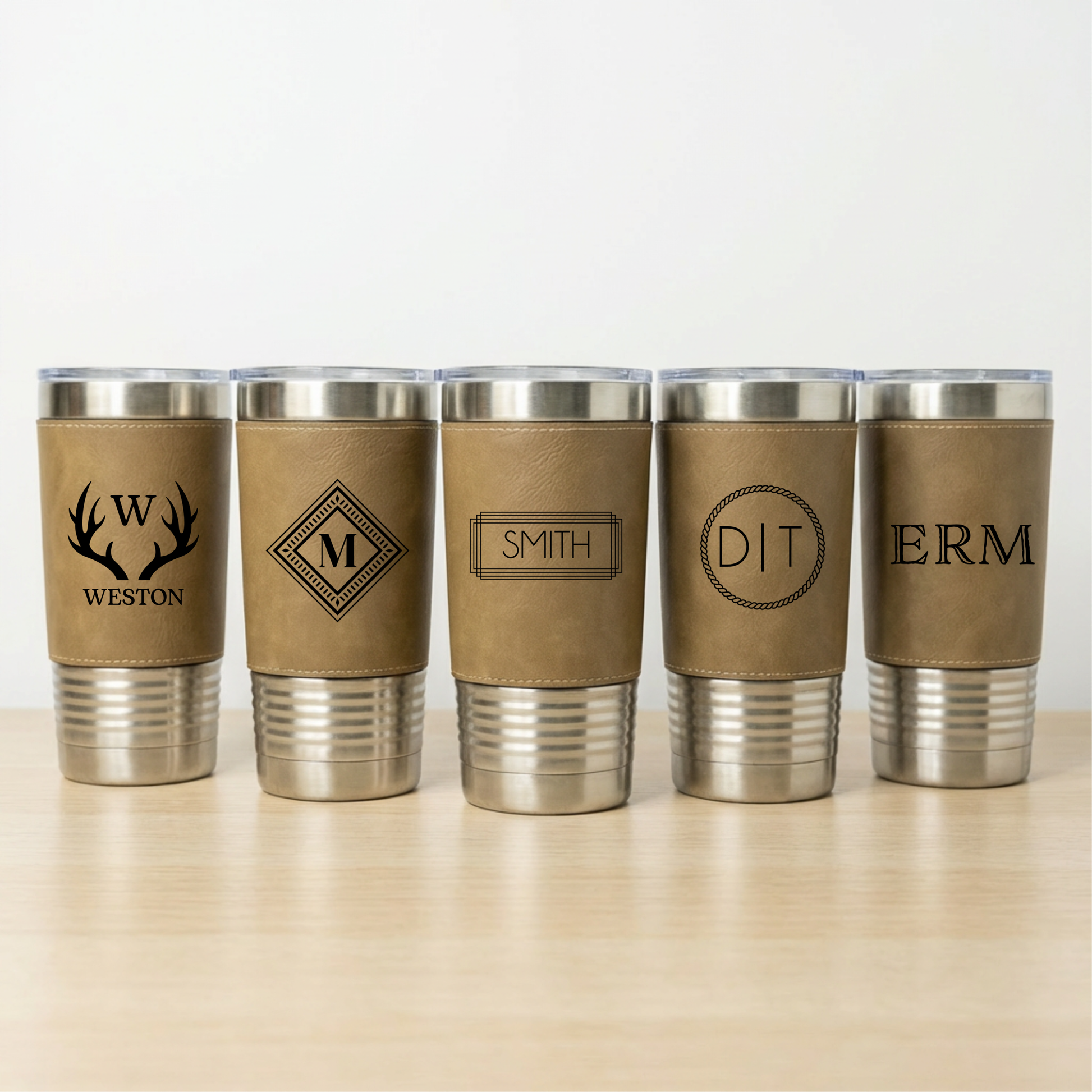 Elevate your drinking experience with our premium 20oz tumbler, expertly wrapped in sophisticated vegan leather and customizable through precision laser engraving. This innovative beverage vessel combines sustainable design with exceptional temperature retention for the modern professional.